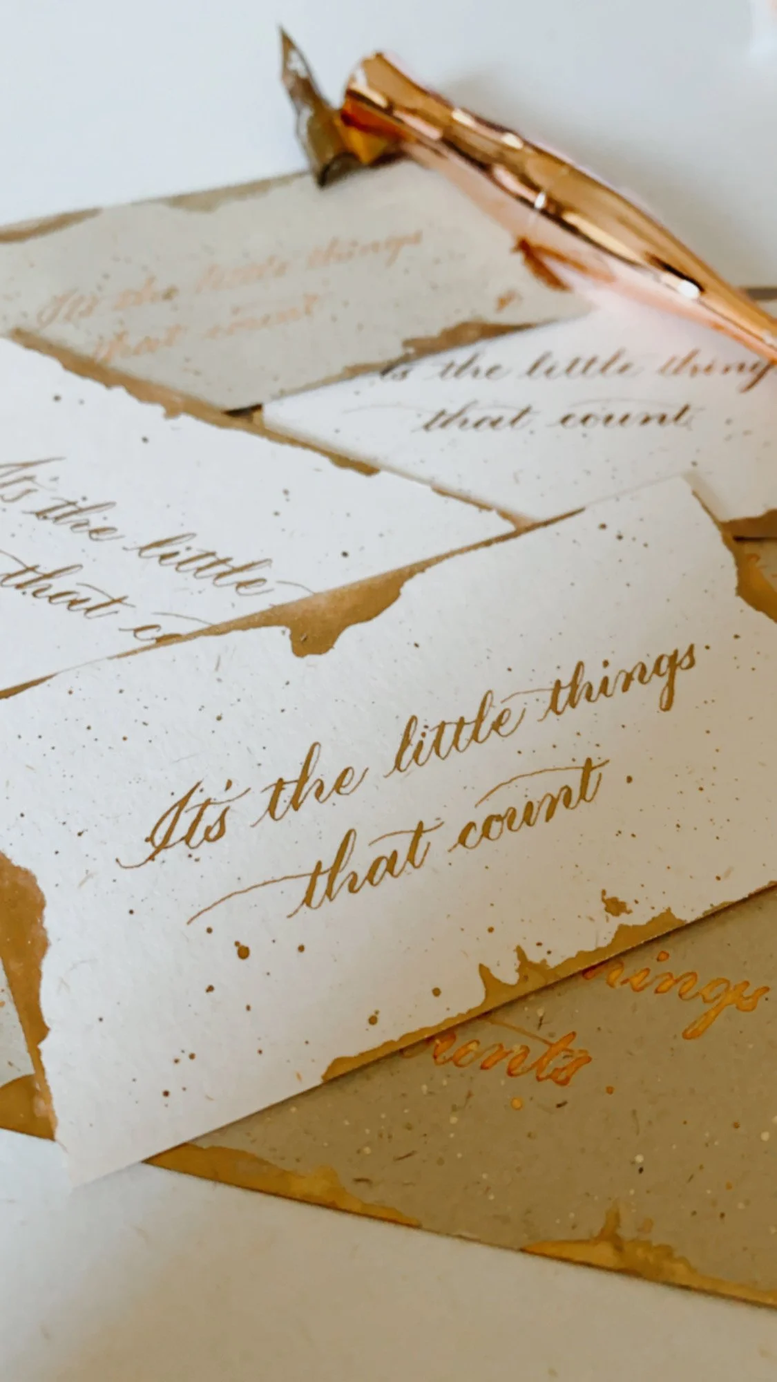 Calligraphy started out as a hobby during my university years. It was the trend on Instagram back then and not many people were aware of this form of art. I learned by watching and re-watching videos that people have uploaded and with hours upon hours of practice, I fell in love with it. I loved the way this slow art healed my soul and gave me a moment of respite while I was focused on it. Here’s a reminder to pause and smell the roses today. (:
