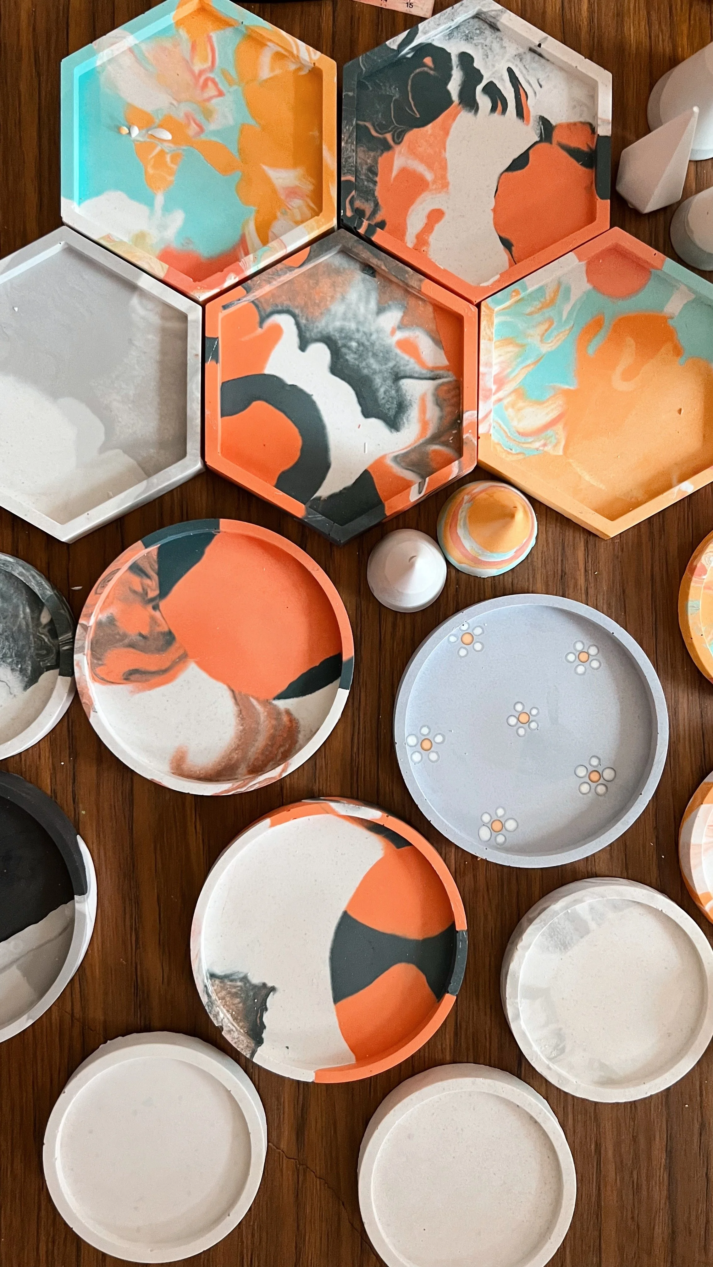 Hello! If you haven’t, I would like to introduce you to Jesmonite, a water based acrylic resin. I love using Jesmonite to create pieces of art and homeware. It all blossomed from an art jamming session with my friends to the love I have for it today! (: